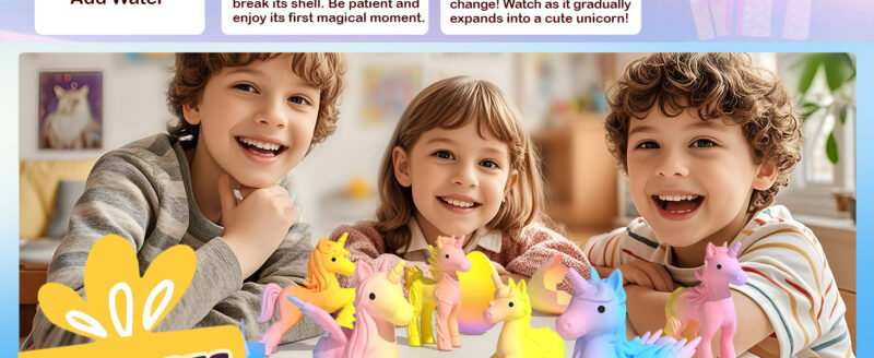 The size of the toys is just right — not too small to lose and not too big to play with comfortably. We kept the toys in water for 3 days, and they grew so much bigger! It was amazing to watch. The kids loved seeing how the egg hatched and how the unicorn changed in size each day — truly magical!
