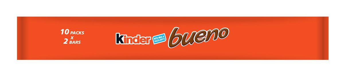 Kinder Bueno: a crispy creamy milk chocolate bar with a unique hazelnut taste. Single packs contain 2 individually wrapped bars (21.5g per bar). Delicate crispy wafer covered in fine milk chocolate. A burst of luscious creamy filling with hazelnut. Carefully decorated with a dark chocolate drizzle. Each Kinder Bueno single bar is individually wrapped to guarantee quality and freshness.