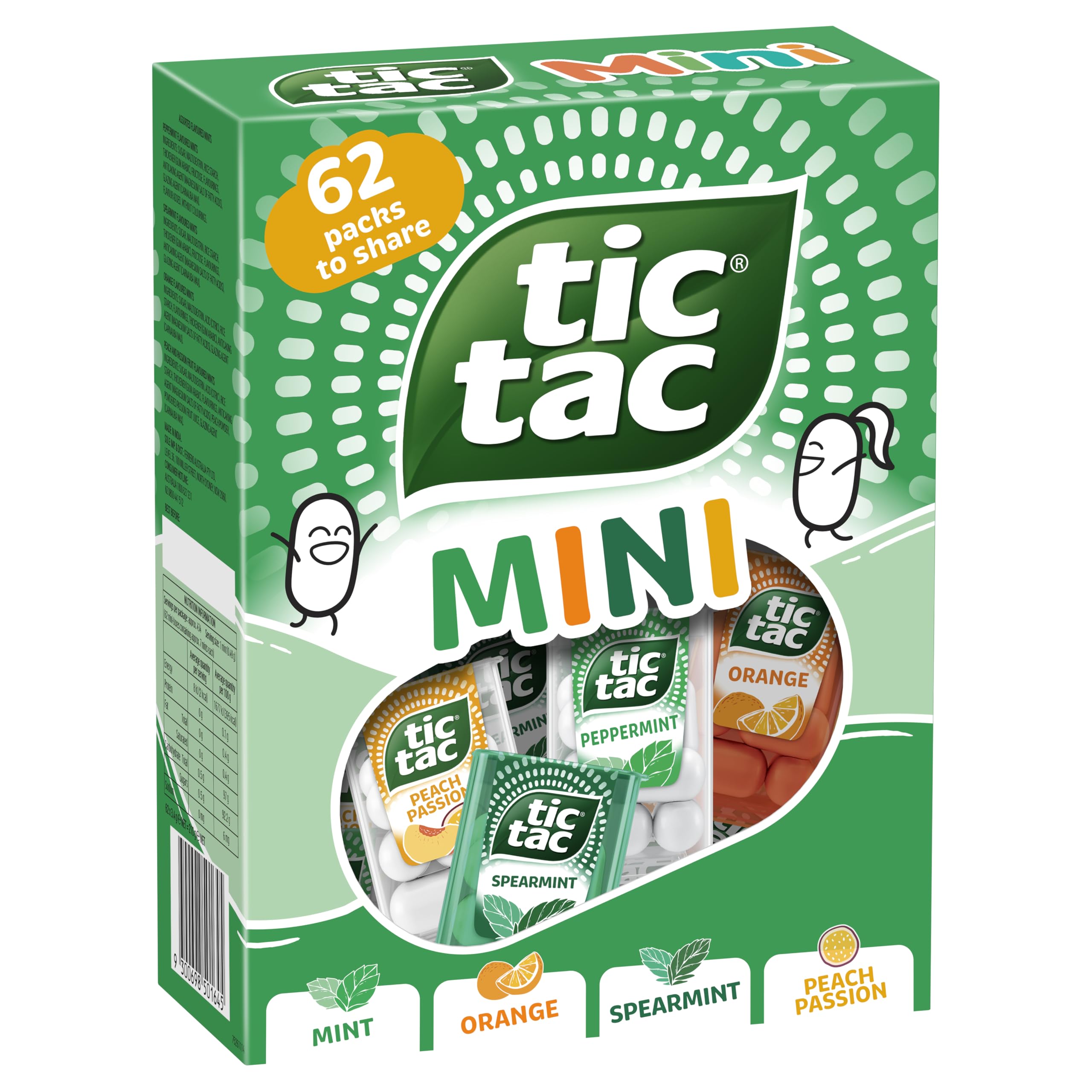 Tic Tac Mini Mints, Gift Box, Multipack with Mint, Spearmint, Orange and Passion Fruit, 62 Packs (3.4g each)